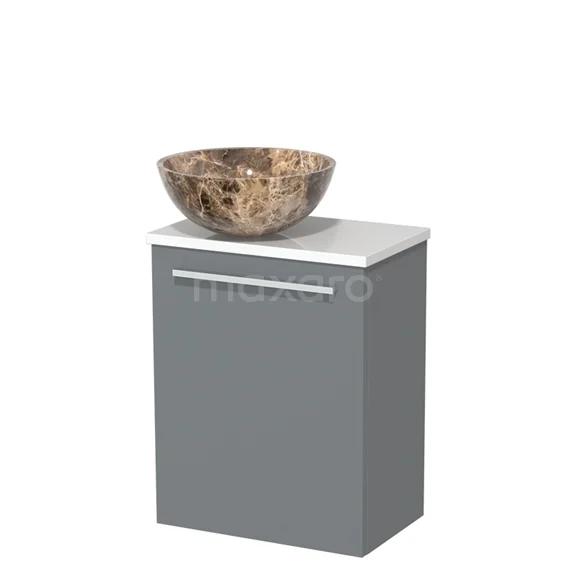 WC-Möbel mit Aufsatzwaschbecken | 41 cm Mittelgrau Glatte Front Dark emperador Becken aus Naturstein Hochglanz Weiß Platte