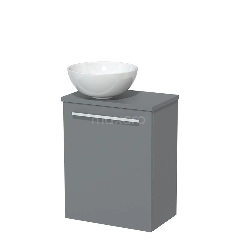 WC-Möbel mit Aufsatzwaschbecken | 41 cm Mittelgrau Glatte Front Hochglanz Weiß Keramik-Aufsatzwaschbecken Mittelgrau Platte