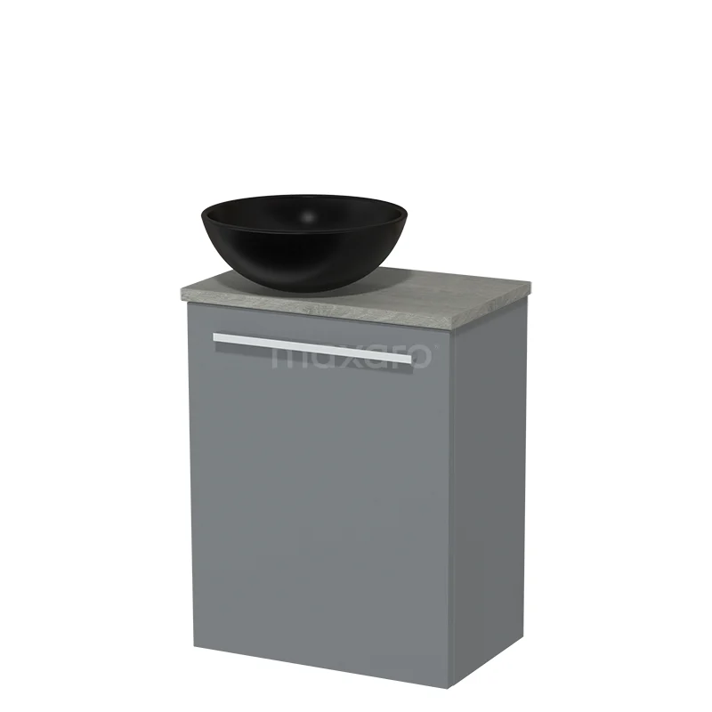 WC-Möbel mit Aufsatzwaschbecken | 41 cm Mittelgrau Glatte Front Matt Schwarz Keramik-Aufsatzwaschbecken Graue Eiche