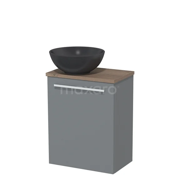WC-Möbel mit Aufsatzwaschbecken | 41 cm Mittelgrau Glatte Front Matt Schwarz Quarz Aufsatzwaschbecken Mittelbraune Eiche