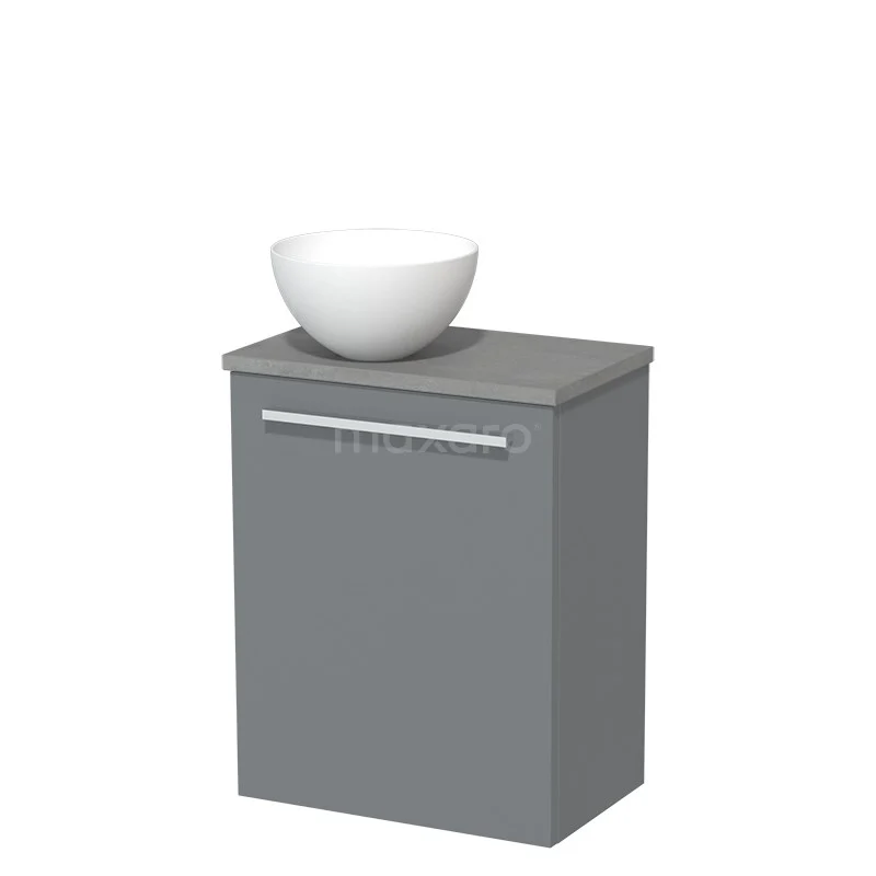 WC-Möbel mit Aufsatzwaschbecken | 41 cm Mittelgrau Glatte Front Matt Weiß Solid Surface Aufsatzwaschbecken Hellgrauer Beton Platte