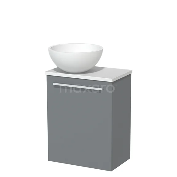 WC-Möbel mit Aufsatzwaschbecken | 41 cm Mittelgrau Glatte Front Matt Weiß Solid Surface Aufsatzwaschbecken Matt Weiße Platte