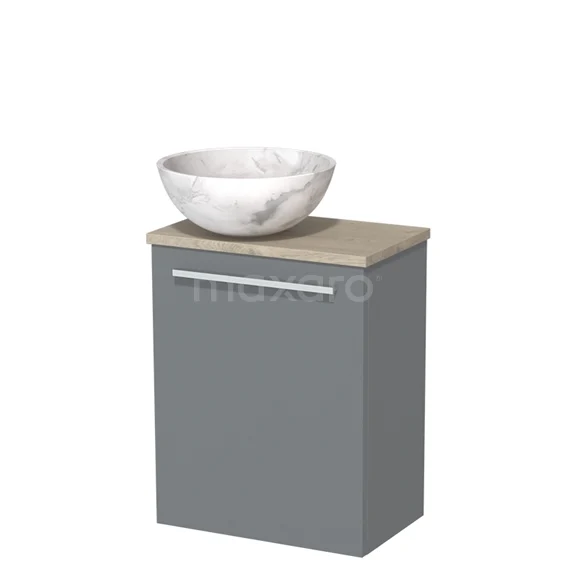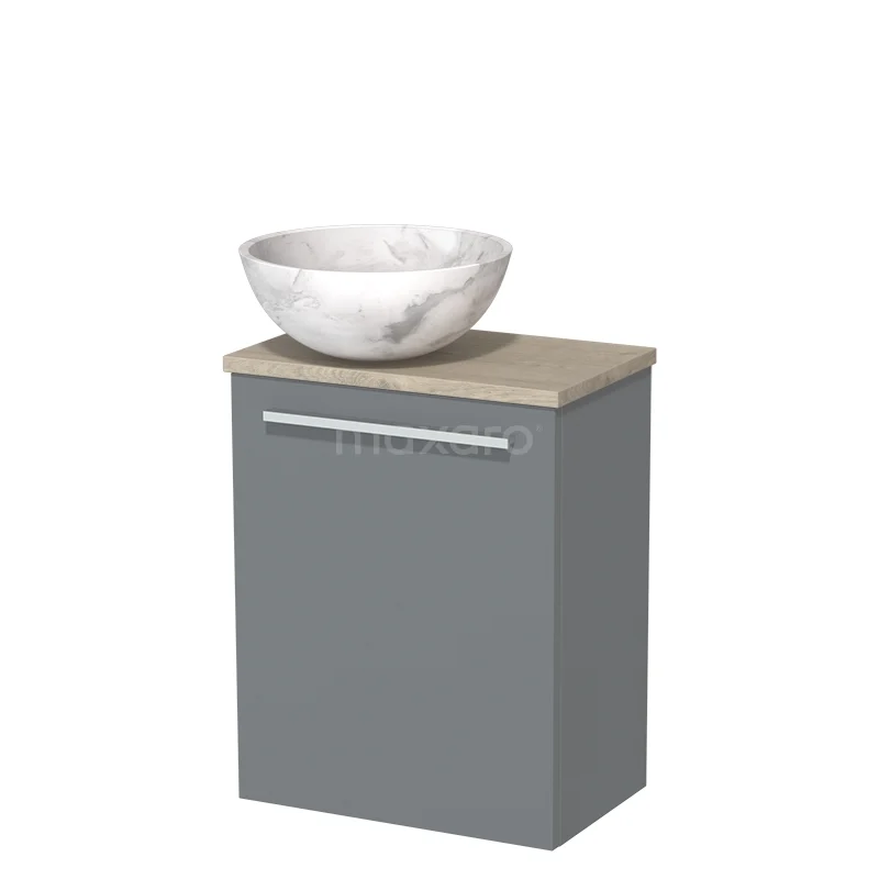 WC-Möbel mit Aufsatzwaschbecken | 41 cm Mittelgrau Glatte Front Weißer Marmor Aufsatzwaschbecken aus Naturstein Hellgraue Eiche