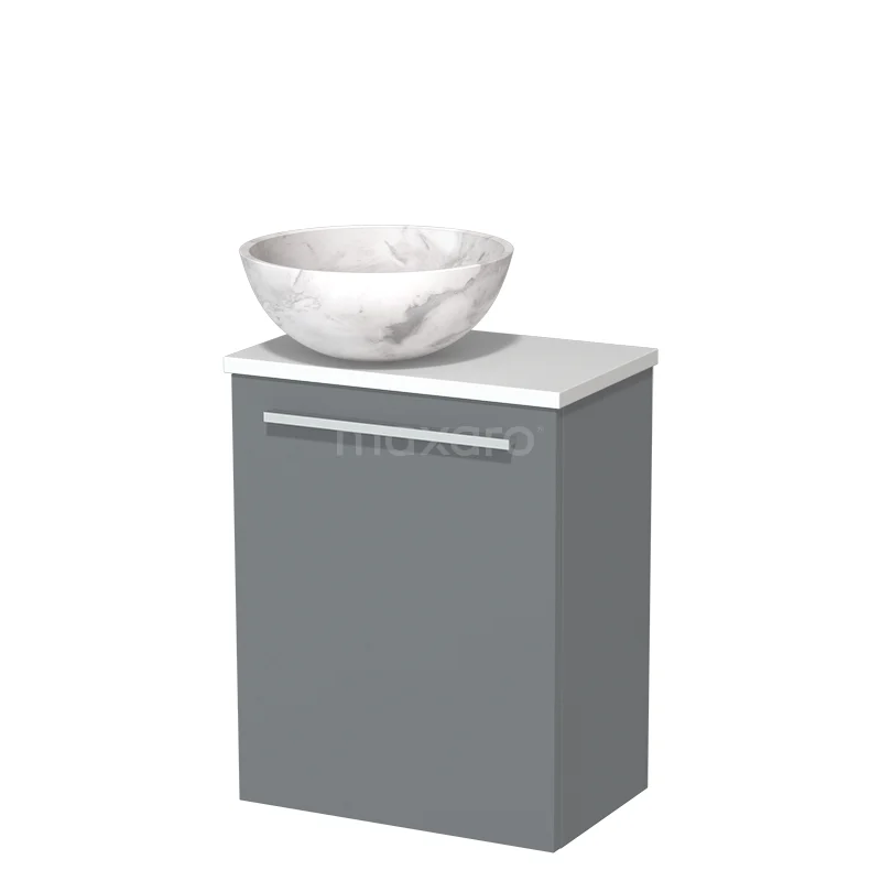 WC-Möbel mit Aufsatzwaschbecken | 41 cm Mittelgrau Glatte Front Weißer Marmor Naturstein Aufsatzwaschbecken Matt Weiß Platte