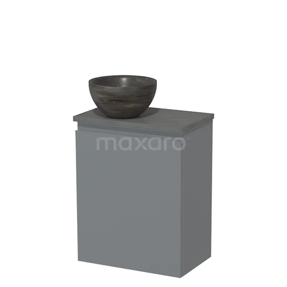 WC-Möbel mit Aufsatzwaschbecken | 41 cm Mittelgrau Grifflose Front Blaustein Naturstein Aufsatzwaschbecken Dunkelgrauer Beton Platte