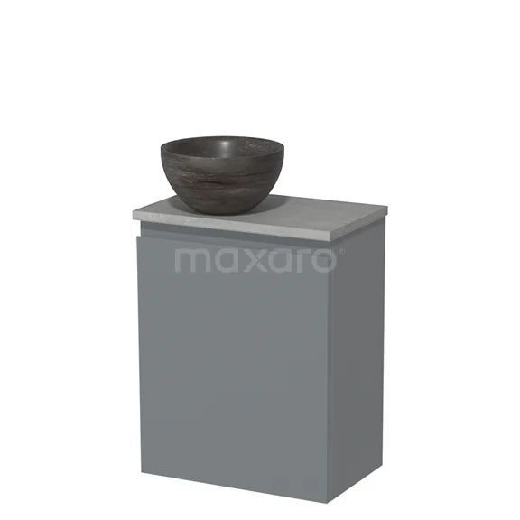 WC-Möbel mit Aufsatzwaschbecken | 41 cm Mittelgrau Grifflose Front Blaustein Naturstein Aufsatzwaschbecken Hellgrauer Beton Platte