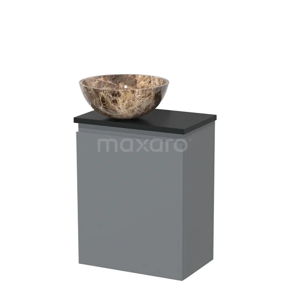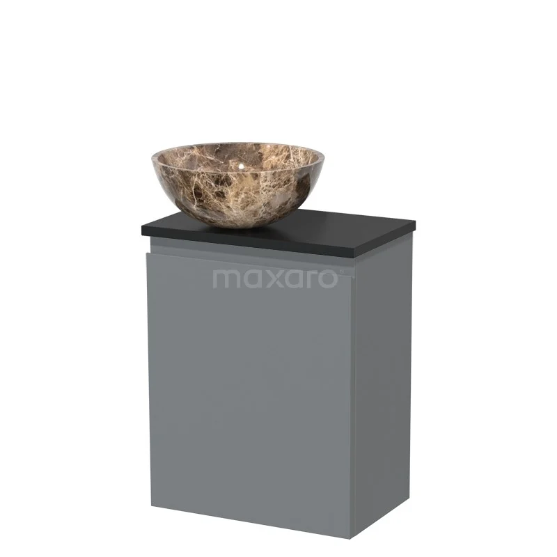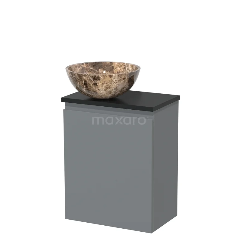 WC-Möbel mit Aufsatzwaschbecken | 41 cm Mittelgrau Grifflose Front Dark emperador Aufsatzwaschbecken aus Naturstein Matt Schwarz