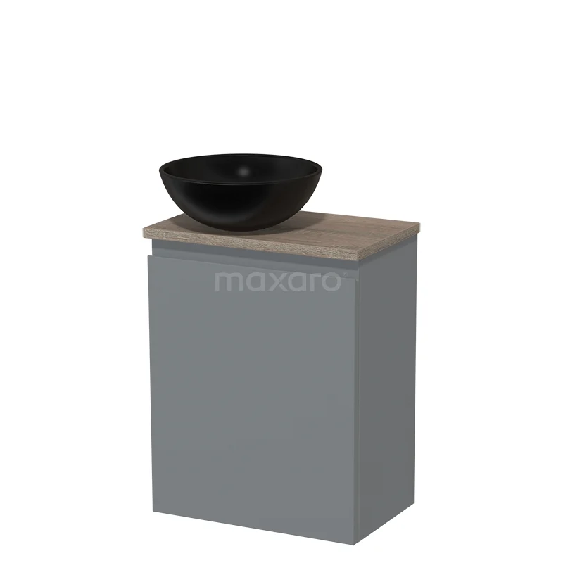 WC-Möbel mit Aufsatzwaschbecken | 41 cm Mittelgrau Grifflose Front Matt Schwarz Keramik Aufsatzwaschbecken Eiche