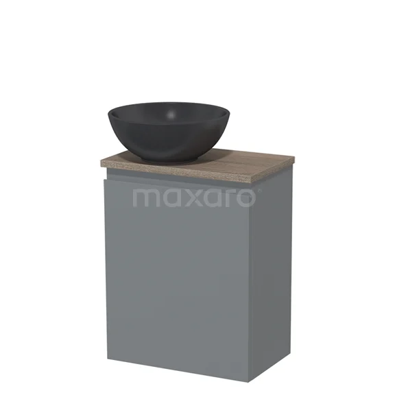 WC-Möbel mit Aufsatzwaschbecken | 41 cm Mittelgrau Grifflose Front Matt Schwarz Quarz Aufsatzwaschbecken Eiche Platte