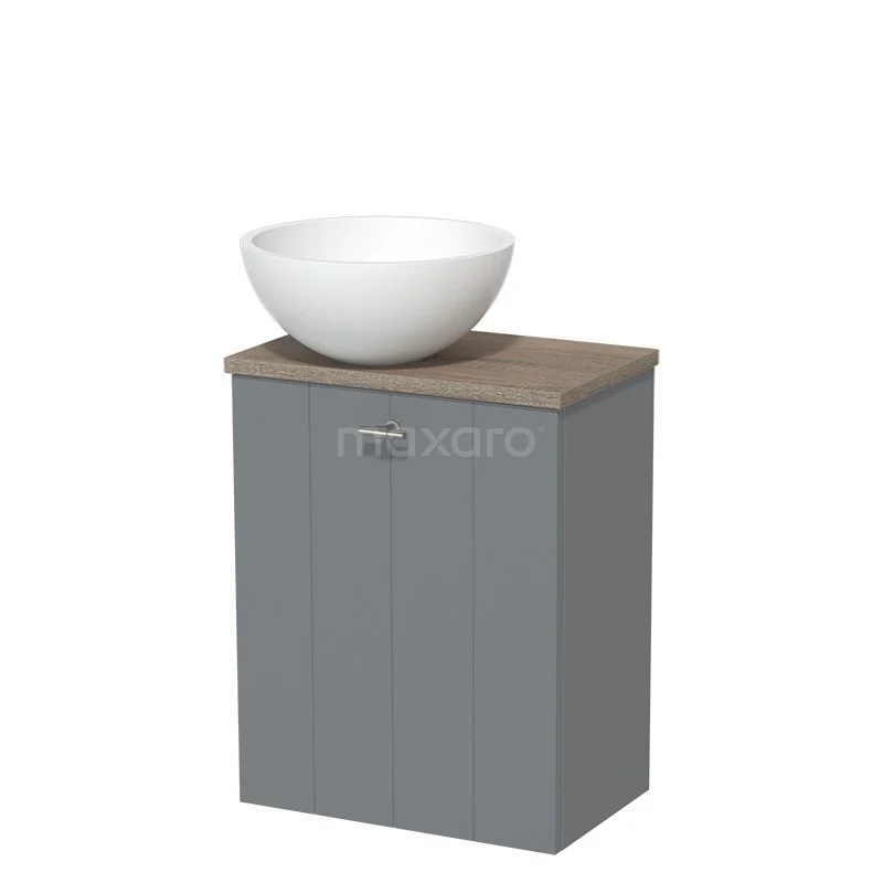 WC-Möbel mit Aufsatzwaschbecken | 41 cm Mittelgrau Lamellenfront Matt Weiß Aufsatzwaschbecken Eiche Platte