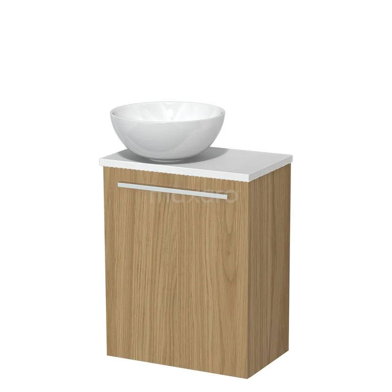 WC-Möbel mit Aufsatzwaschbecken | 41 cm Naturfurnier Glatte Front Hochglanz Weiß Keramik-Aufsatzwaschbecken Hochglanz Weiß Platte