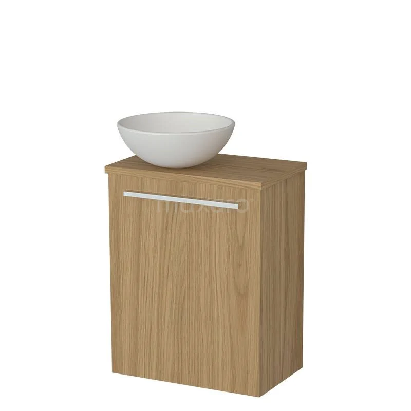 WC-Möbel mit Aufsatzwaschbecken | 41 cm Naturfurnier glatte Front Matt Weiß Keramik-Aufsatzwaschbecken Naturfurnier Platte