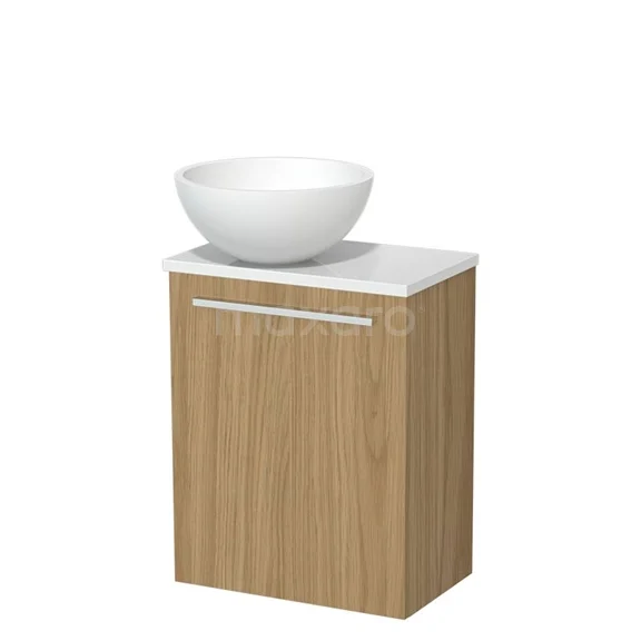 WC-Möbel mit Aufsatzwaschbecken | 41 cm Naturfurnier Glatte Front Matt Weiß Solid Surface Aufsatzwaschbecken Hochglanz Weiß Platte