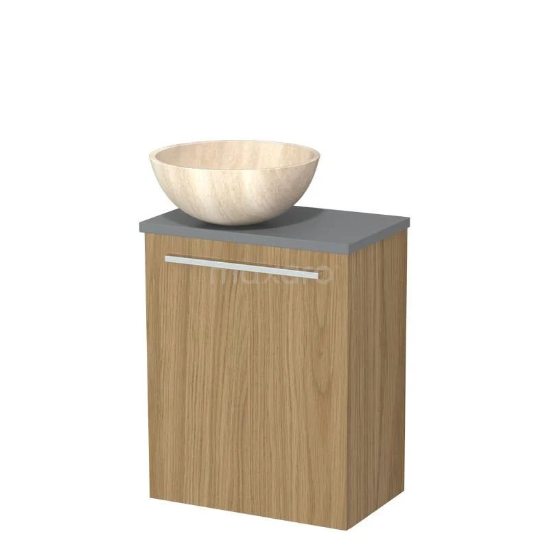 WC-Möbel mit Aufsatzwaschbecken | 41 cm Naturfurnier glatte Front Travertin Naturstein-Aufsatzwaschbecken Mittelgraue Platte