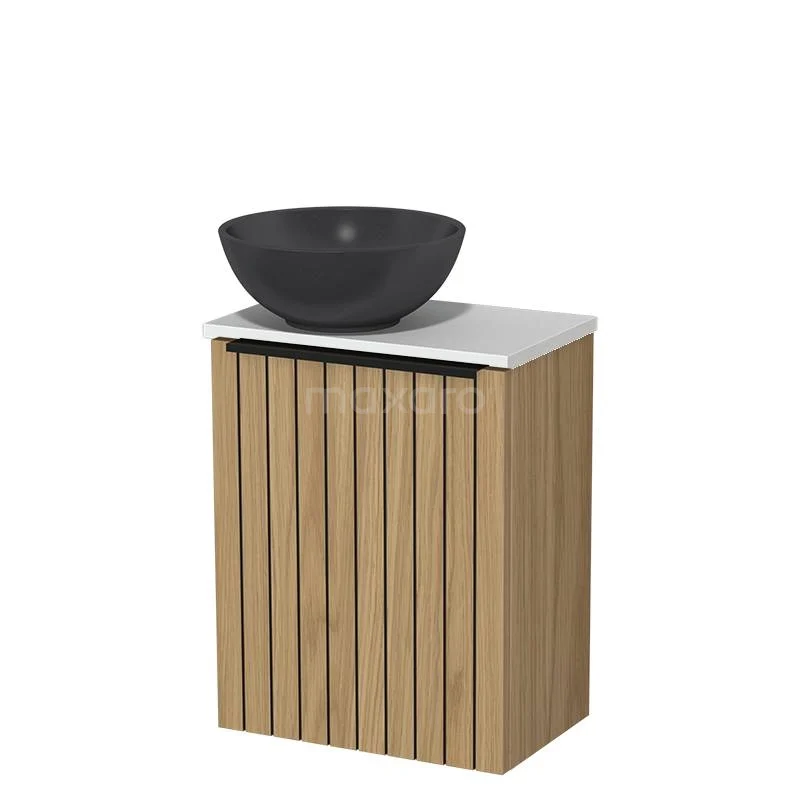 WC-Möbel mit Aufsatzwaschbecken | 41 cm Naturfurnier Leistenfront Matt Schwarz Quarz Aufsatzwaschbecken Hochglanz Weiß