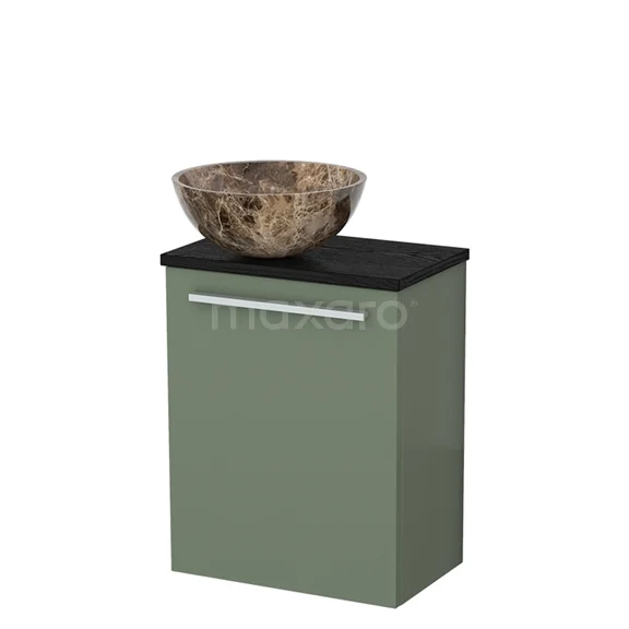 WC-Möbel mit Aufsatzwaschbecken | 41 cm Salbeigrün Glatte Front Dark emperador Aufsatzwaschbecken aus Naturstein Schwarze Eiche