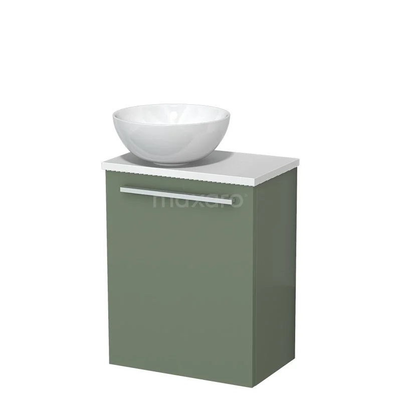 WC-Möbel mit Aufsatzwaschbecken | 41 cm Salbeigrün Glatte Front Hochglanz Weiß Keramik-Aufsatzwaschbecken Hochglanz Weiß Platte