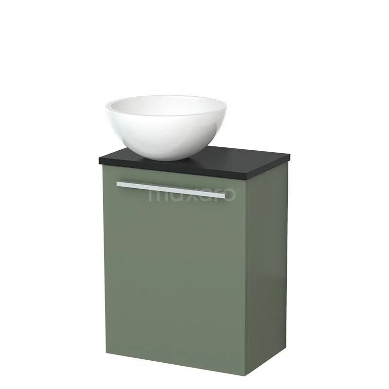 WC-Möbel mit Aufsatzwaschbecken | 41 cm Salbeigrün Glatte Front Hochglanz Weiß Mineralguss Aufsatzwaschbecken Matt Schwarz Platte