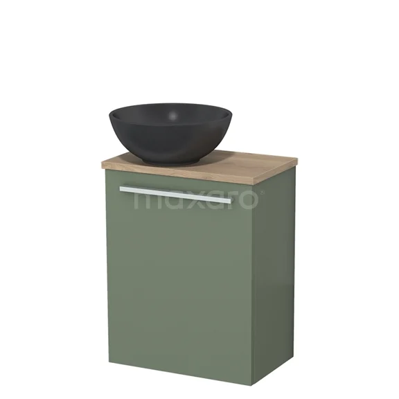 WC-Möbel mit Aufsatzwaschbecken | 41 cm Salbeigrün Glatte Front Matt Schwarz Quarz Aufsatzwaschbecken Hellbraune Eiche