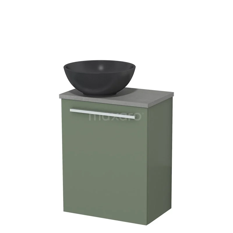WC-Möbel mit Aufsatzwaschbecken | 41 cm Salbeigrün Glatte Front Matt Schwarz Quarz Aufsatzwaschbecken Hellgrauer Beton Platte