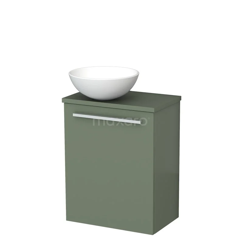 WC-Möbel mit Aufsatzwaschbecken | 41 cm Salbeigrün Glatte Front Matt Weiß Keramik-Aufsatzwaschbecken Salbeigrün Platte