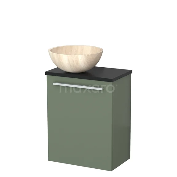 WC-Möbel mit Aufsatzwaschbecken | 41 cm Salbeigrün Glatte Front Travertin Naturstein-Aufsatzwaschbecken Matt Schwarz Platte