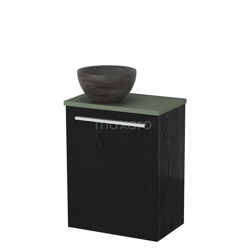 WC-Möbel mit Aufsatzwaschbecken | 41 cm Schwarze Eiche Glatte Front Blaustein Naturstein Aufsatzwaschbecken Salbeigrün