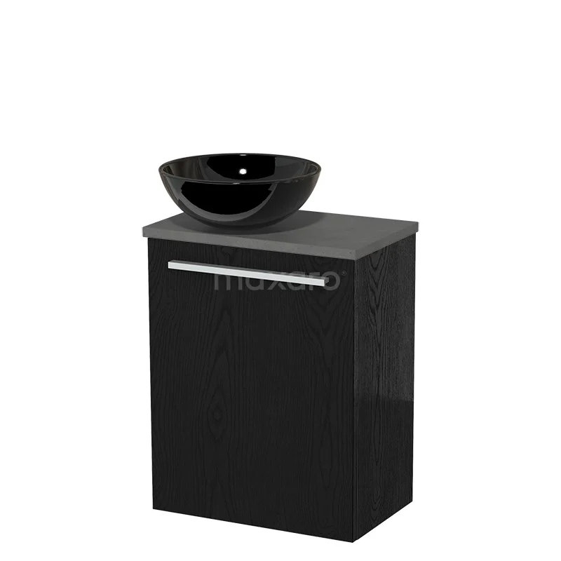 WC-Möbel mit Aufsatzwaschbecken | 41 cm Schwarze Eiche Glatte Front Hochglanz Schwarz Keramik-Aufsatzwaschbecken Dunkelgrauer Beton Platte