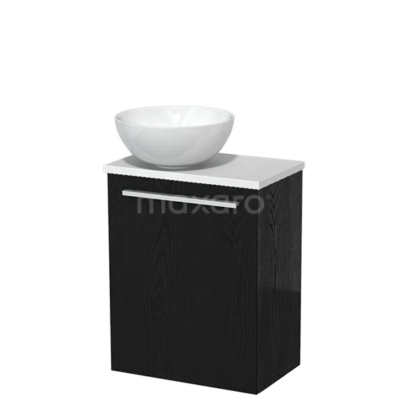 WC-Möbel mit Aufsatzwaschbecken | 41 cm Schwarze Eiche Glatte Front Hochglanz Weiß Keramik Aufsatzwaschbecken Matt Weiß Platte
