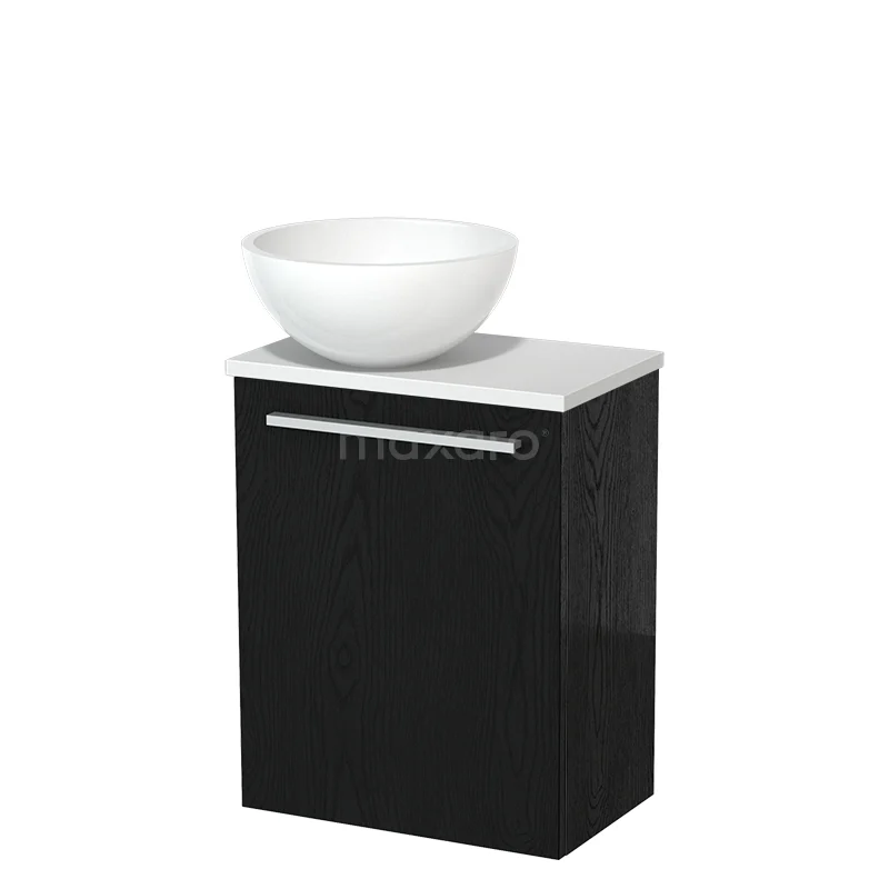 WC-Möbel mit Aufsatzwaschbecken | 41 cm Schwarze Eiche Glatte Front Hochglanz Weiß Mineralguss Aufsatzwaschbecken Matt Weiß Platte