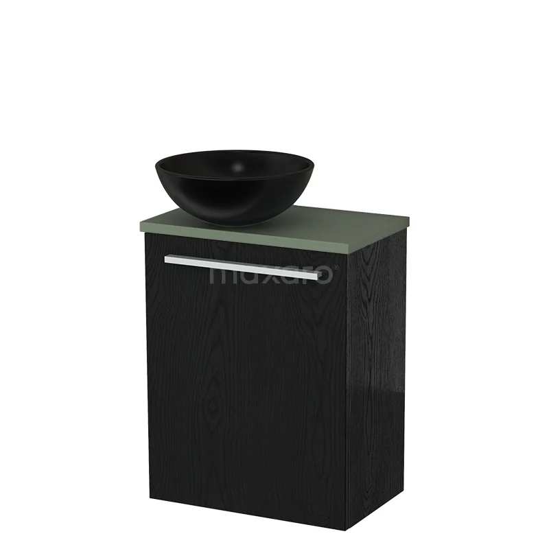 WC-Möbel mit Aufsatzwaschbecken | 41 cm Schwarze Eiche Glatte Front Matt Schwarz Keramik-Aufsatzwaschbecken Salbeigrün