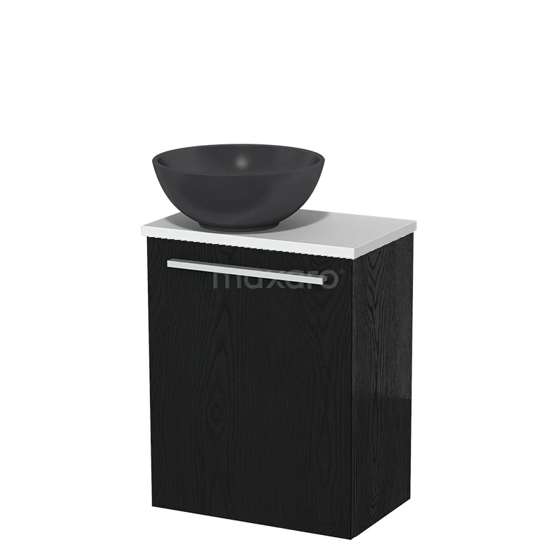 WC-Möbel mit Aufsatzwaschbecken | 41 cm Schwarze Eiche Glatte Front Matt Schwarz Quarz Aufsatzwaschbecken Hochglanz Weiß Platte