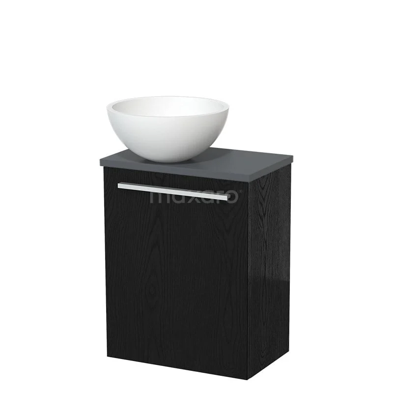 WC-Möbel mit Aufsatzwaschbecken | 41 cm Schwarze Eiche Glatte Front Matt Weiß Aufsatzwaschbecken Dunkelgrau Platte