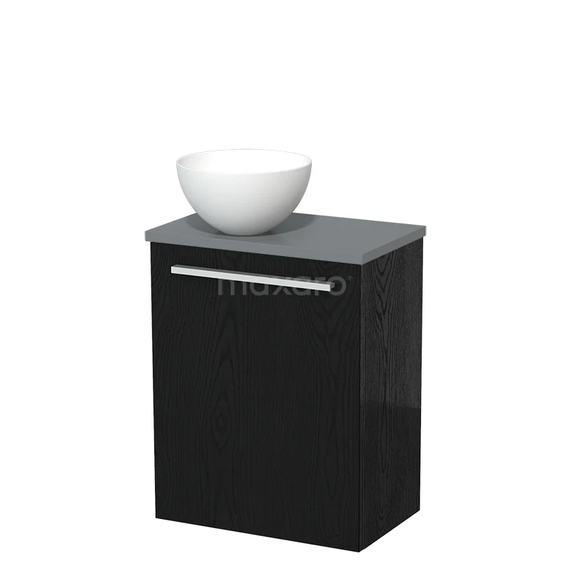 WC-Möbel mit Aufsatzwaschbecken | 41 cm Schwarze Eiche Glatte Front Matt Weiß Aufsatzwaschbecken Mittelgraue Platte