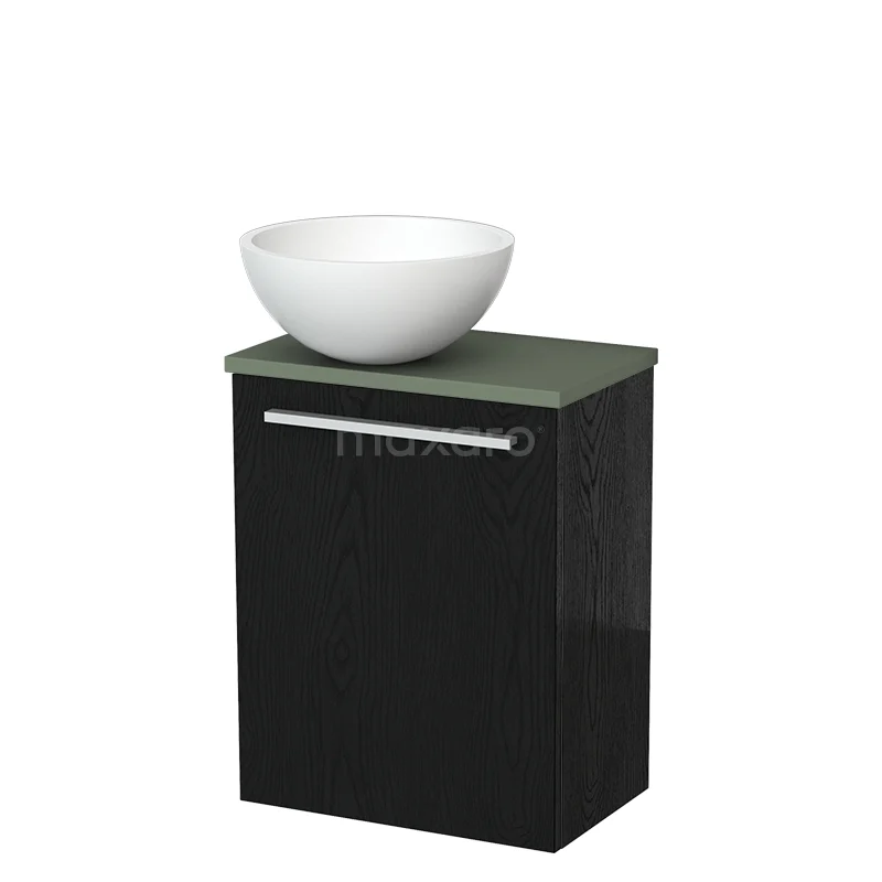 WC-Möbel mit Aufsatzwaschbecken | 41 cm Schwarze Eiche Glatte Front Matt Weiß Aufsatzwaschbecken Salbeigrüne Platte