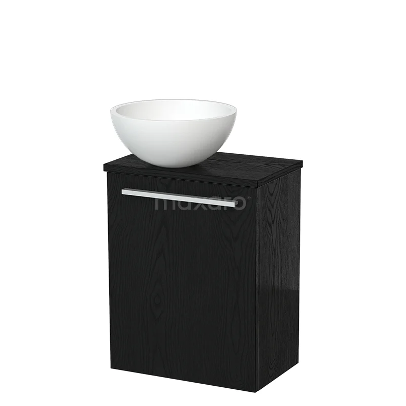 WC-Möbel mit Aufsatzwaschbecken | 41 cm Schwarze Eiche Glatte Front Matt Weiß Aufsatzwaschbecken Schwarze Eiche Platte