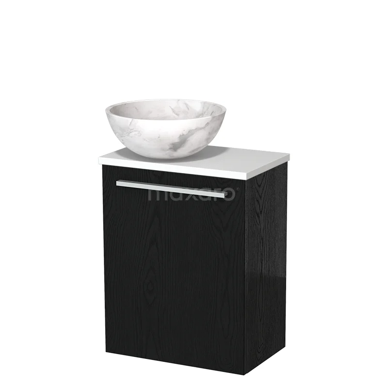 WC-Möbel mit Aufsatzwaschbecken | 41 cm Schwarze Eiche Glatte Front Weißer Marmor Aufsatzwaschbecken aus Naturstein Matt Weiß Platte