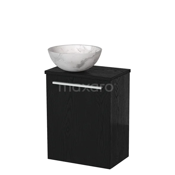 WC-Möbel mit Aufsatzwaschbecken | 41 cm Schwarze Eiche Glatte Front Weißer Marmor Aufsatzwaschbecken aus Naturstein Schwarze Eiche Platte