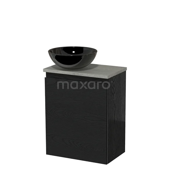 WC-Möbel mit Aufsatzwaschbecken | 41 cm Schwarze Eiche Grifflose Front Hochglanz Schwarz Keramik-Aufsatzwaschbecken Graue Eiche