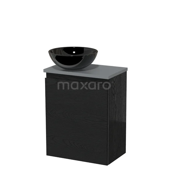 WC-Möbel mit Aufsatzwaschbecken | 41 cm Schwarze Eiche Grifflose Front Hochglanz Schwarz Keramik-Aufsatzwaschbecken Mittelgraue Platte