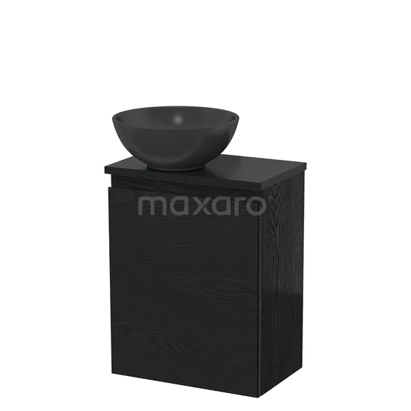 WC-Möbel mit Aufsatzwaschbecken | 41 cm Schwarze Eiche Grifflose Front Matt Schwarz Quarz Aufsatzwaschbecken Matt Schwarz Platte