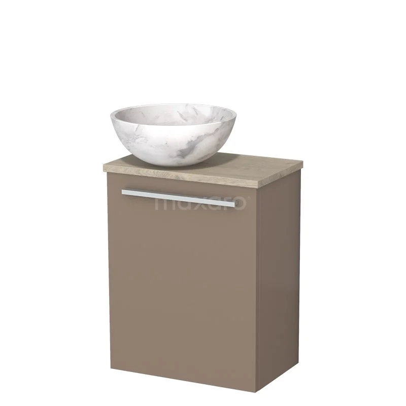 WC-Möbel mit Aufsatzwaschbecken | 41 cm Taupe Flat Front Weißer Marmor Naturstein Aufsatzwaschbecken Hellgraue Eiche Platte