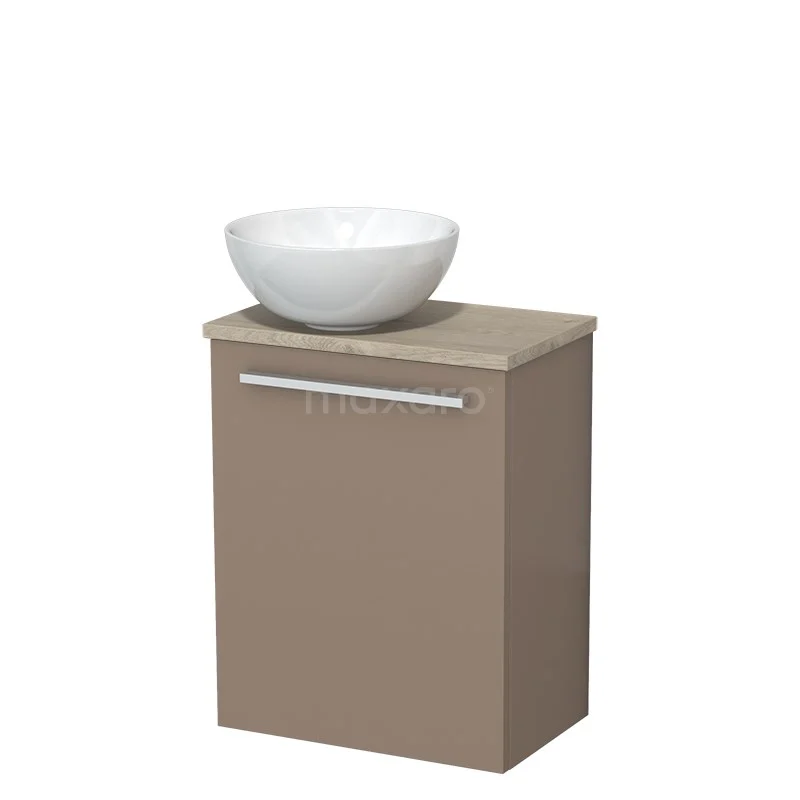 WC-Möbel mit Aufsatzwaschbecken | 41 cm Taupe Glatte Front Hochglanz Weiß Keramik-Aufsatzwaschbecken Hellgraue Eiche Platte
