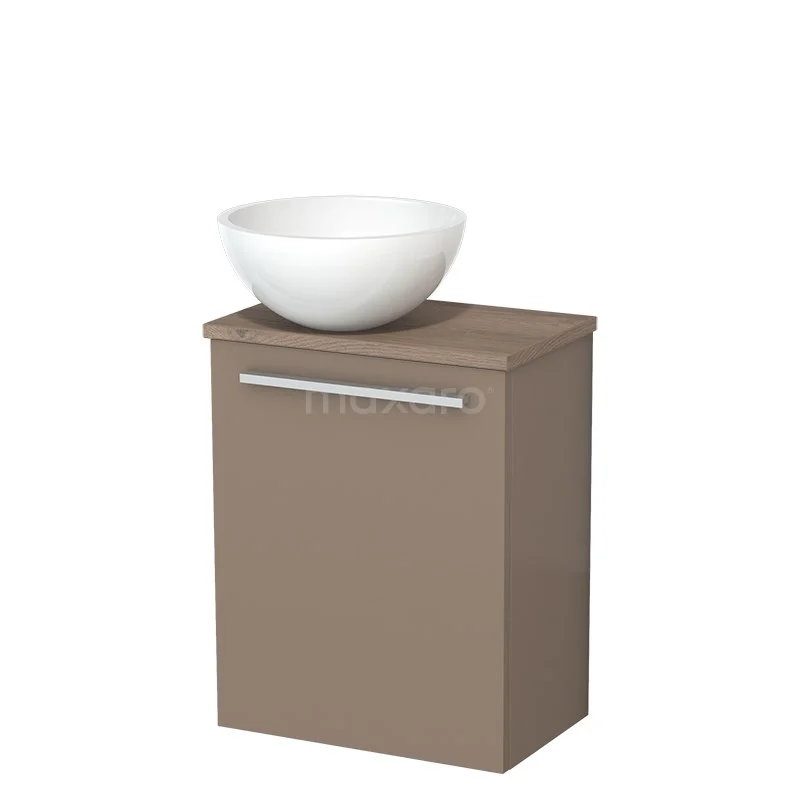 WC-Möbel mit Aufsatzwaschbecken | 41 cm Taupe Glatte Front Hochglanz Weiß Mineralguss Aufsatzwaschbecken Mittelbraune Eiche