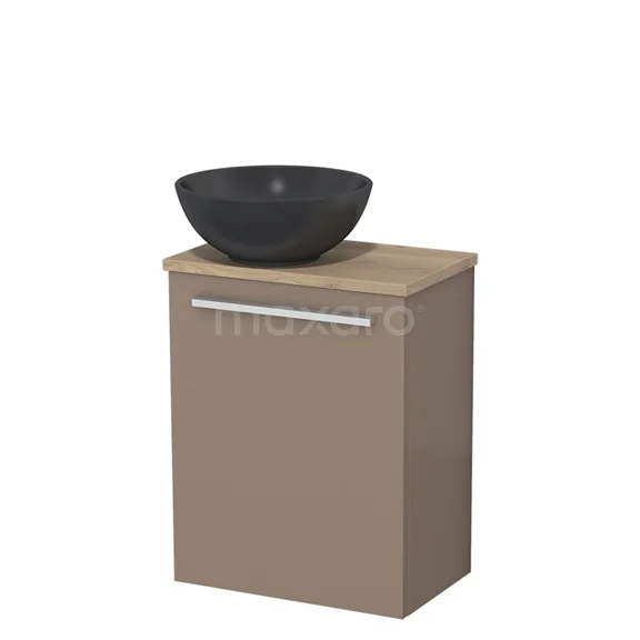 WC-Möbel mit Aufsatzwaschbecken | 41 cm Taupe Glatte Front Matt Schwarz Quarz Aufsatzwaschbecken Hellbraune Eiche