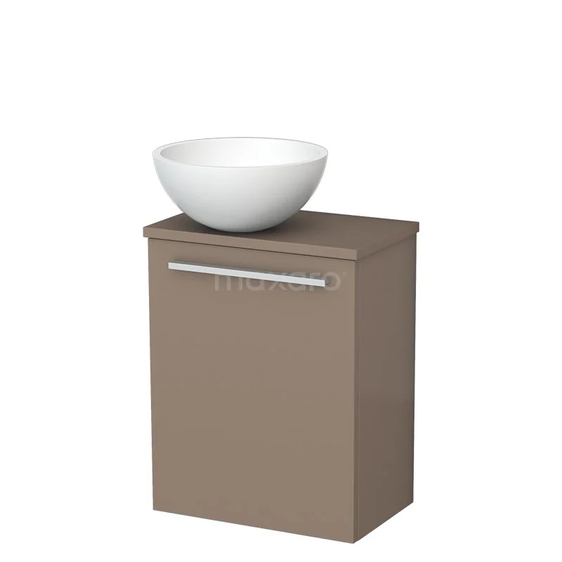 WC-Möbel mit Aufsatzwaschbecken | 41 cm Taupe Glatte Front Matt Weiß Solid Surface Aufsatzwaschbecken Taupe Platte