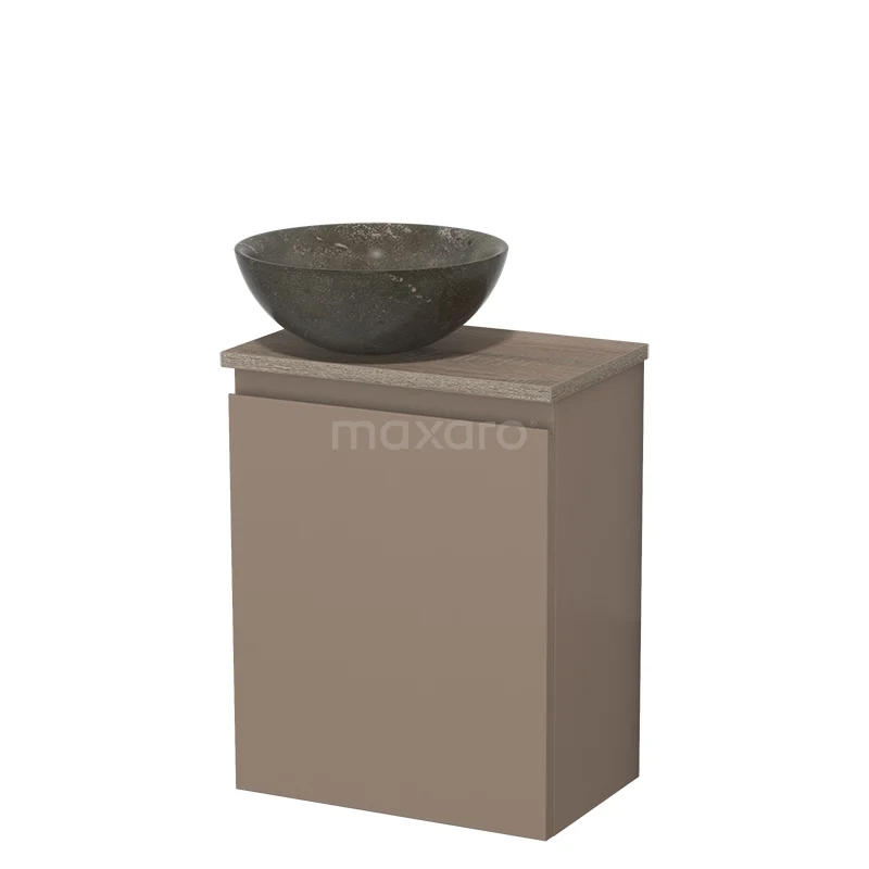 WC-Möbel mit Aufsatzwaschbecken | 41 cm Taupe Grifflose Front Blaustein Naturstein Aufsatzwaschbecken Eiche Platte
