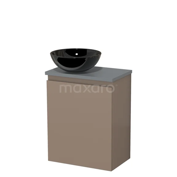 WC-Möbel mit Aufsatzwaschbecken | 41 cm Taupe Grifflose Front Hochglanz Schwarz Keramik-Aufsatzwaschbecken Mittelgraue Platte