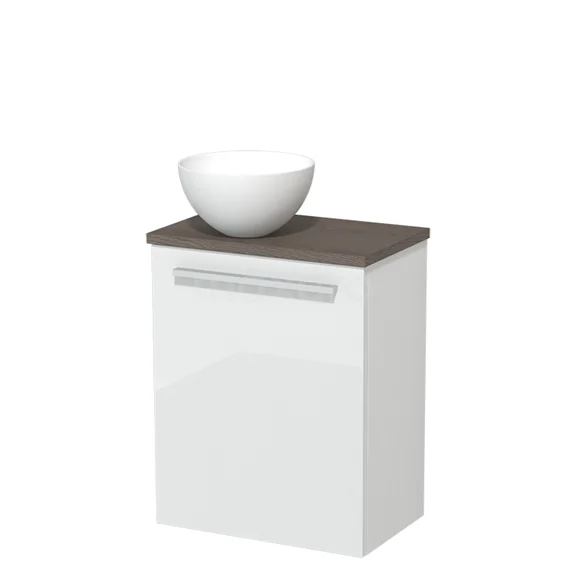 WC-Möbel mit Waschbecken | 41 cm Hochglanz Weiß Glatte Front Matt Weiß Solid Surface Aufsatzwaschbecken Dunkelbraune Eiche Platte