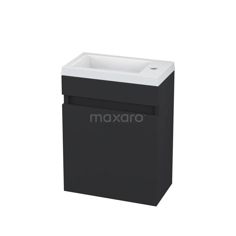 WC-Möbel mit Waschbecken Mineralguss Curve Matt Schwarz 40cm